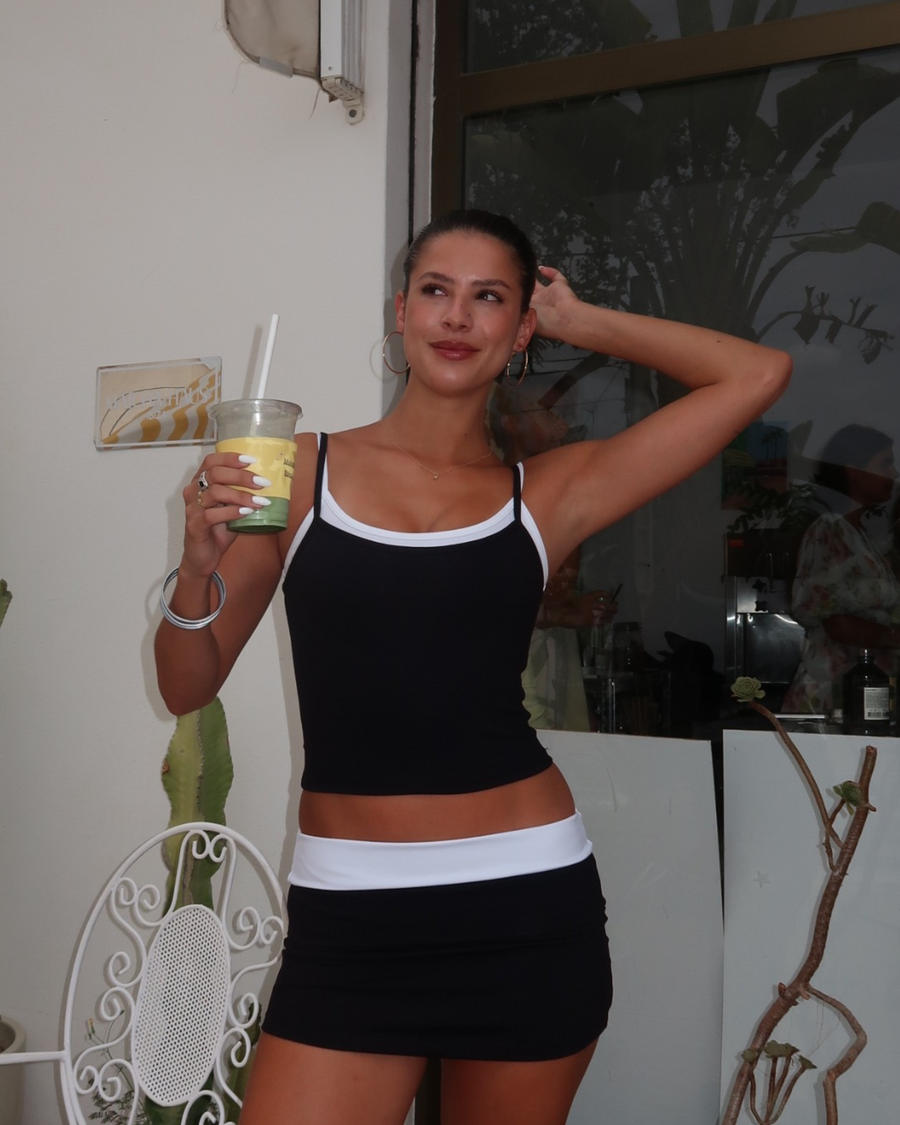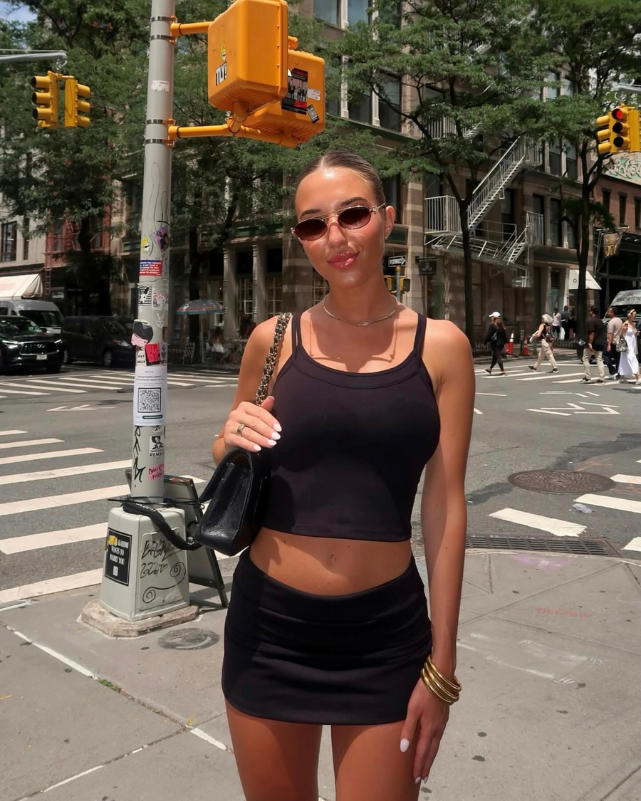 Each piece is designed for the cool girl —sleek, minimal, and endlessly versatile. Our tank, skirt, and pants are all cut to flatter in HALO’s signature fabric. Together, they form staples that feel both timeless and of-the-moment.